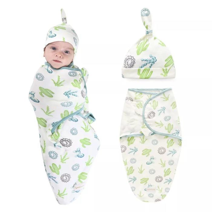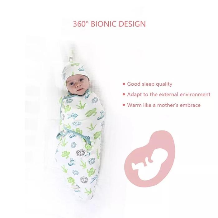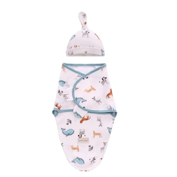 PROMO TERBATAS BEDONG INSTAN SET TOPI BAYI BEDONG SWADDLE WRAP BEDONG TIDUR BAYI BLUE STRIPE
