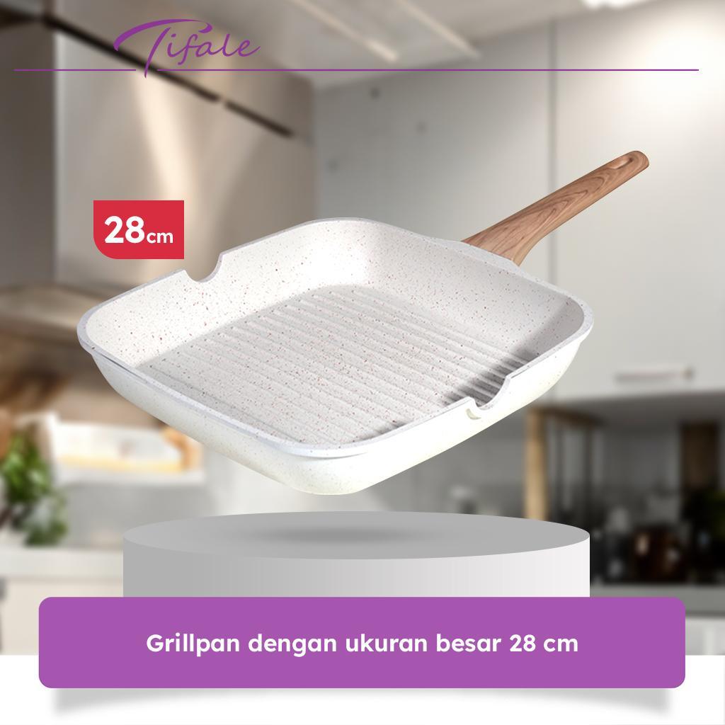 Tifale by Hongzhuo Grillpan 28 CM White Granit Grill Pan Peralatan Masak Dapur Anit Lengket
