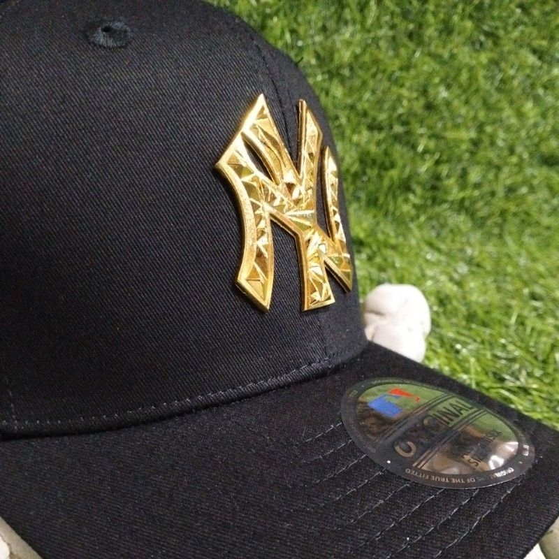 NY Metal Gold Diamond Topi Baseball Hitam Six Panel Unisex Full Tag MLB Premium