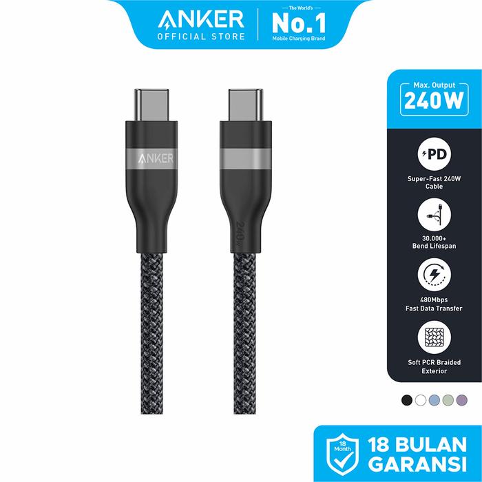 PROMO TERBATAS ANKER USB C TO USB C 240W UPCYCLED BRAIDED FAST CHARGING CABLE 3FT A82E2 BLACK