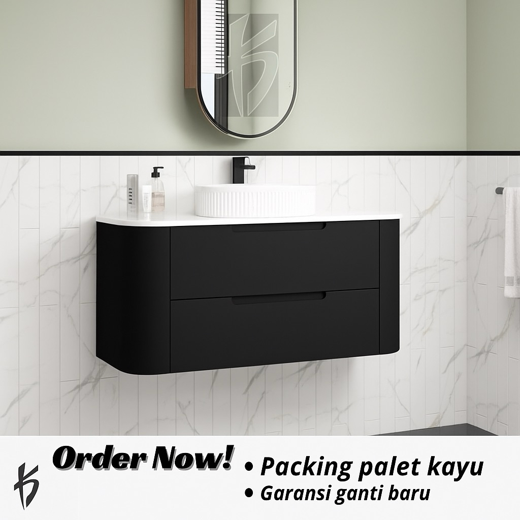 kabinet wastafel lengkung 2 laci rak penyimpanan kamar mandi