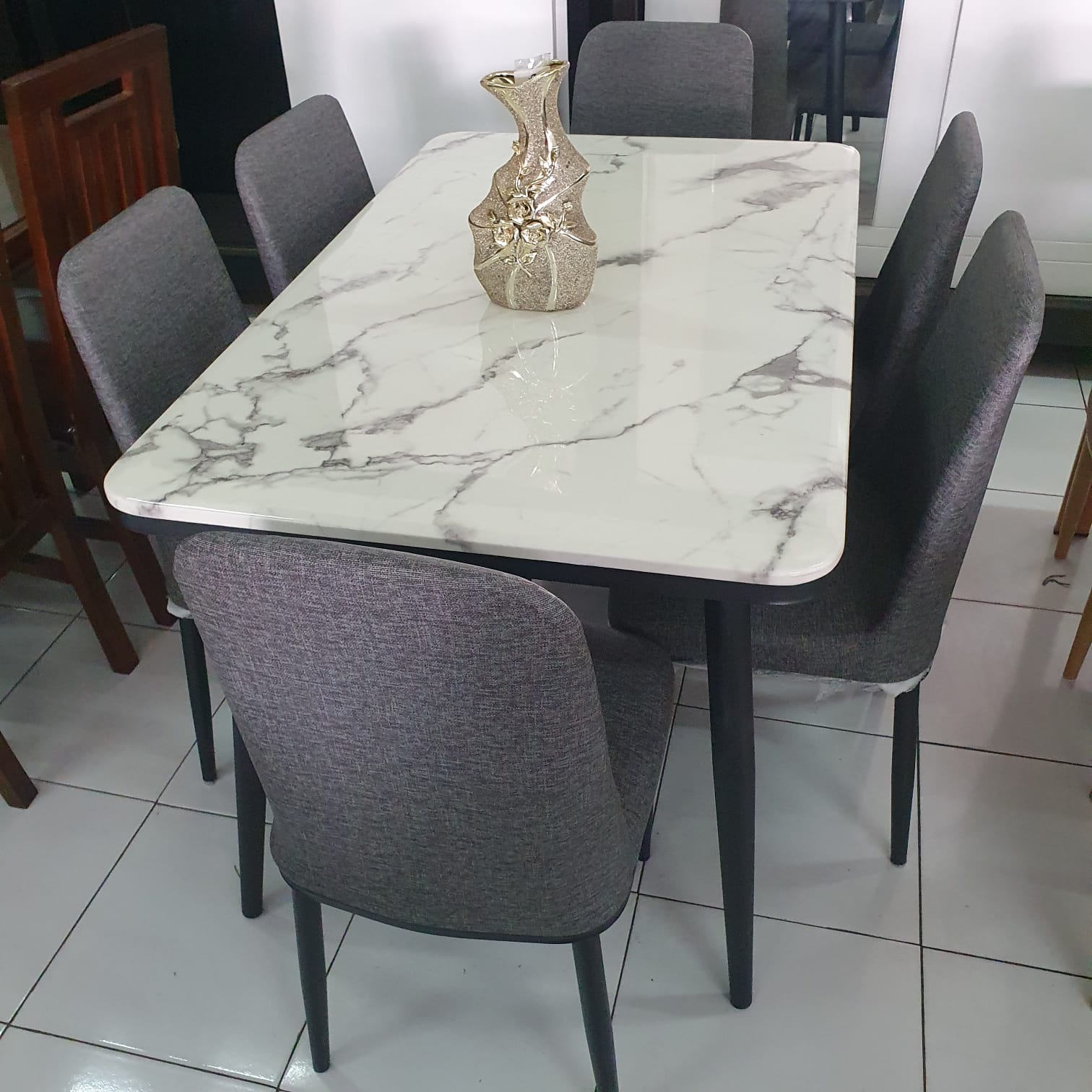 MEJA MAKAN SEMI MARMER 6 KURSI