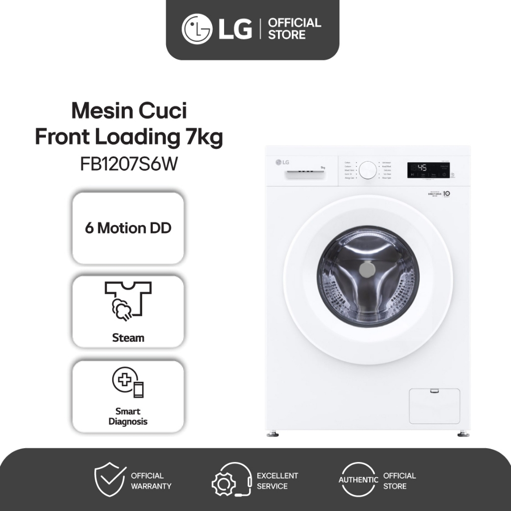 (Free Instalasi) - LG Mesin Cuci Front Loading 1 Tabung 7kg Smart Inverter - Fitur Steam - 6 Motion - FB1207S6W