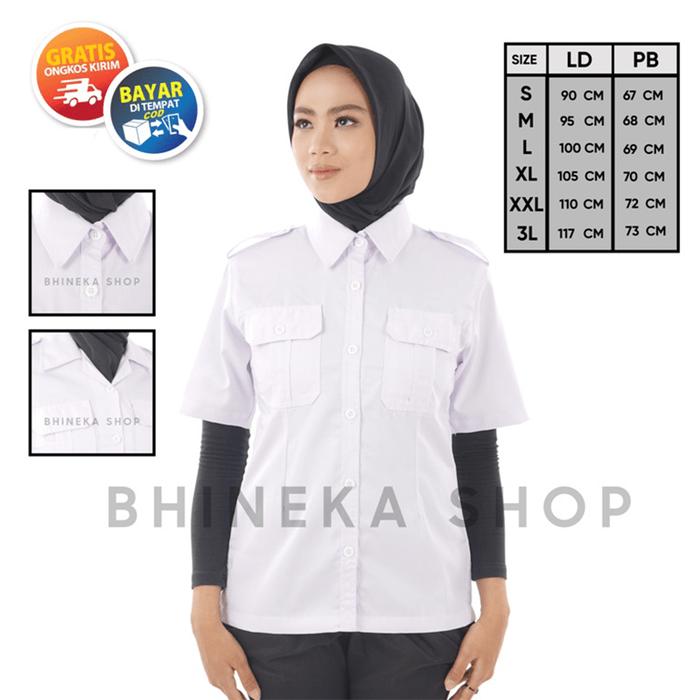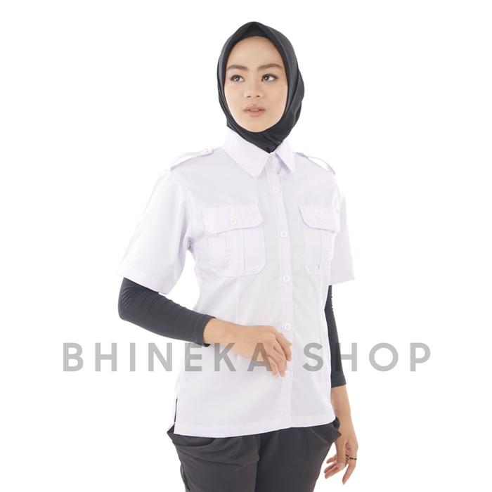 PROMO TERBATAS KEMEJA PDH PUTIH WANITA LENGAN PENDEK SERAGAM PNS PUTIH WANITA PUTIH VNECK S