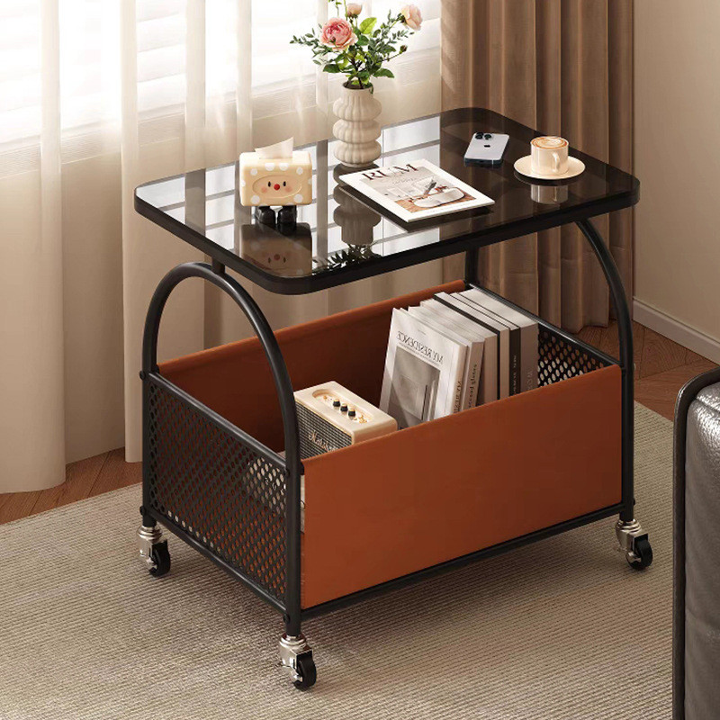 Meja Tamu Meja Kopi Seluler Besi+Kaca Meja Tamu Rak Penyimpanan Dua Lapis Santai Meja Kopi Meja Meja Kecil Kamar samping