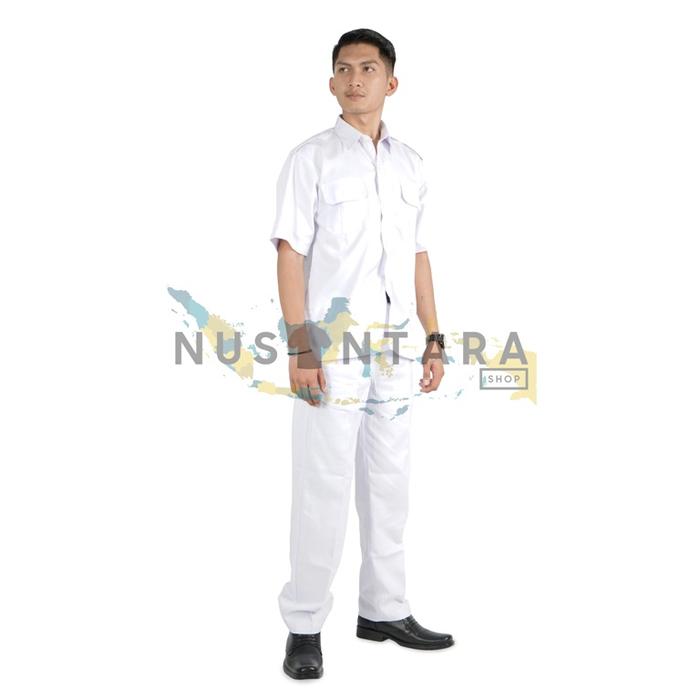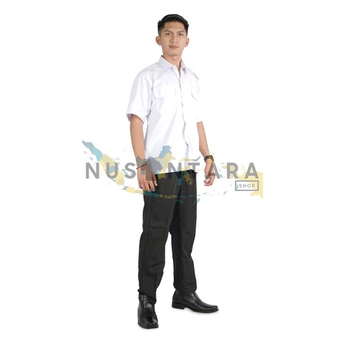 PROMO TERBATAS SETELAN SERAGAM DINAS PNS PUTIH DENGAN 3 WARNA CELANA COKLAT HITAM PUTIH PRIA PANJANG SET KEMEJA&CLN HITAM S
