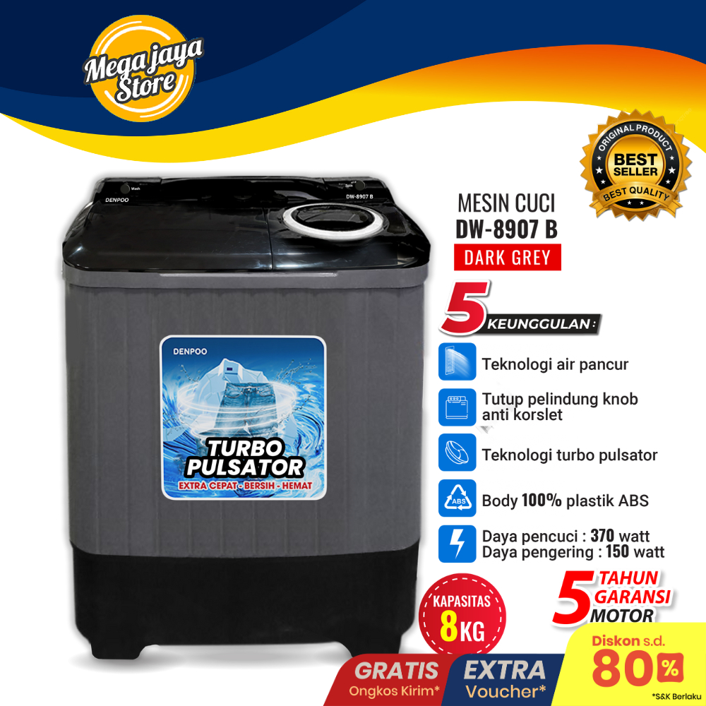 MESIN CUCI DW 8907 4P DENPOO 8KG/2 TABUNG