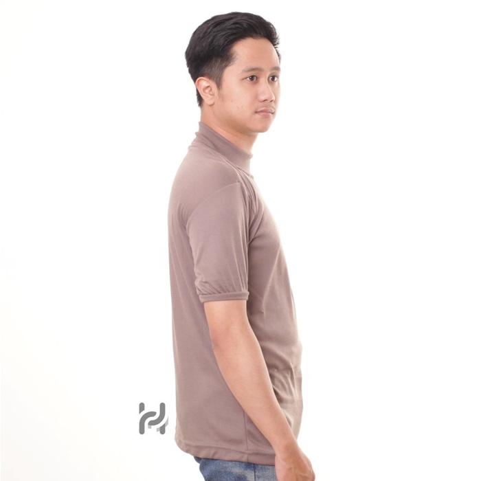 PROMO TERBATAS KAOS POLOS DALAMAN TERBARU KERAH TINGGI WARNA CREAM COKLAT HITAM NAVY COKLAT M