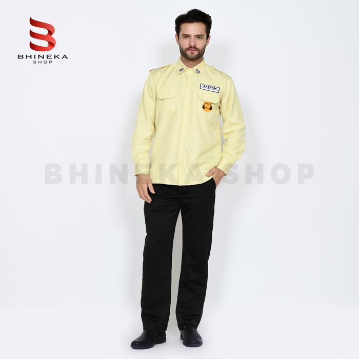 PROMO TERBATAS SERAGAM SATPAM TERBARU 2025 WARNA CREAM SERAGAM SECURITY SATPAM LENGAN PANJANG PRIA SATU SET LENGAN PANJANG S