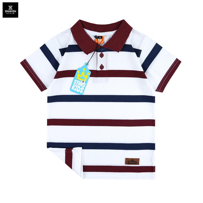 DP 0 ZHAVIN KAOS KERAH ANAK LAKILAKI MOTIF SALUR STRIPE UMUR 112 TAHUN KK SL 04 PUTIH MAROON S
