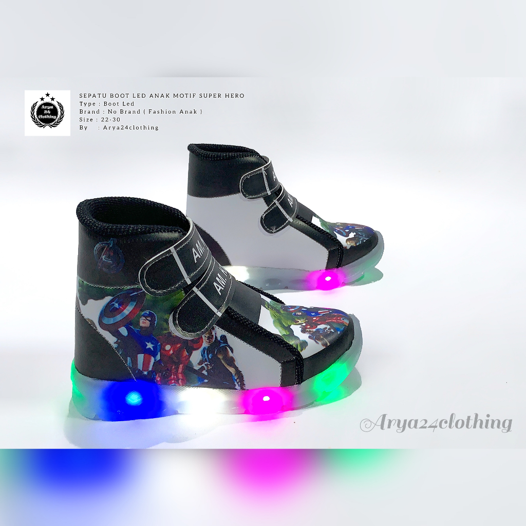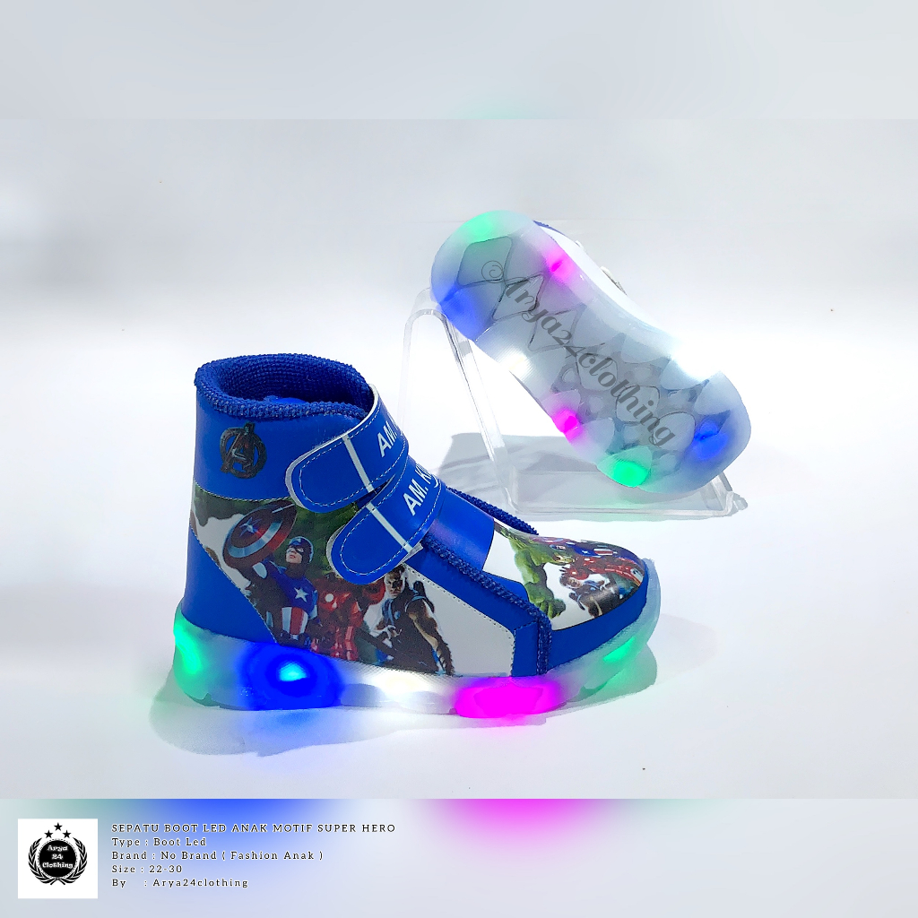 Sepatu Boot LED anak laki-laki motif Avengers TERBARU 2023