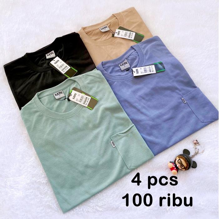 DP 0 4 PCS 100K BAJU KAOS POCKET SAKU KANTONG POLOS UNISEX PRIA & WANITA REGULER FIT TSHIRT PENDEK 4 WARNA RANDOM L