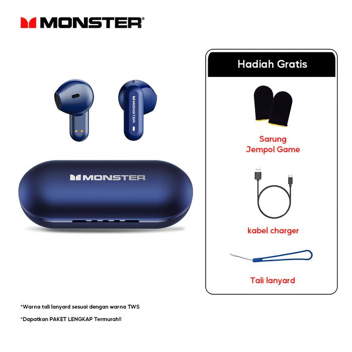 DP 0 [GERATISSARUNG JEMPOL GAMING] MONSTER XKT25 WIRELESS BLUETOOTH EARPHONE EARBUDS HEADSET TWS STEREO - BIRU