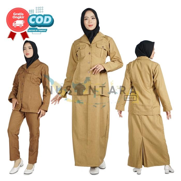 PROMO TERBATAS SERAGAM DINAS KHAKI WANITA MODEL SAKU ATAS CELANA PANJANG CELANA PANJANG SETELAN KERJA KHAKY TUA CELANA S