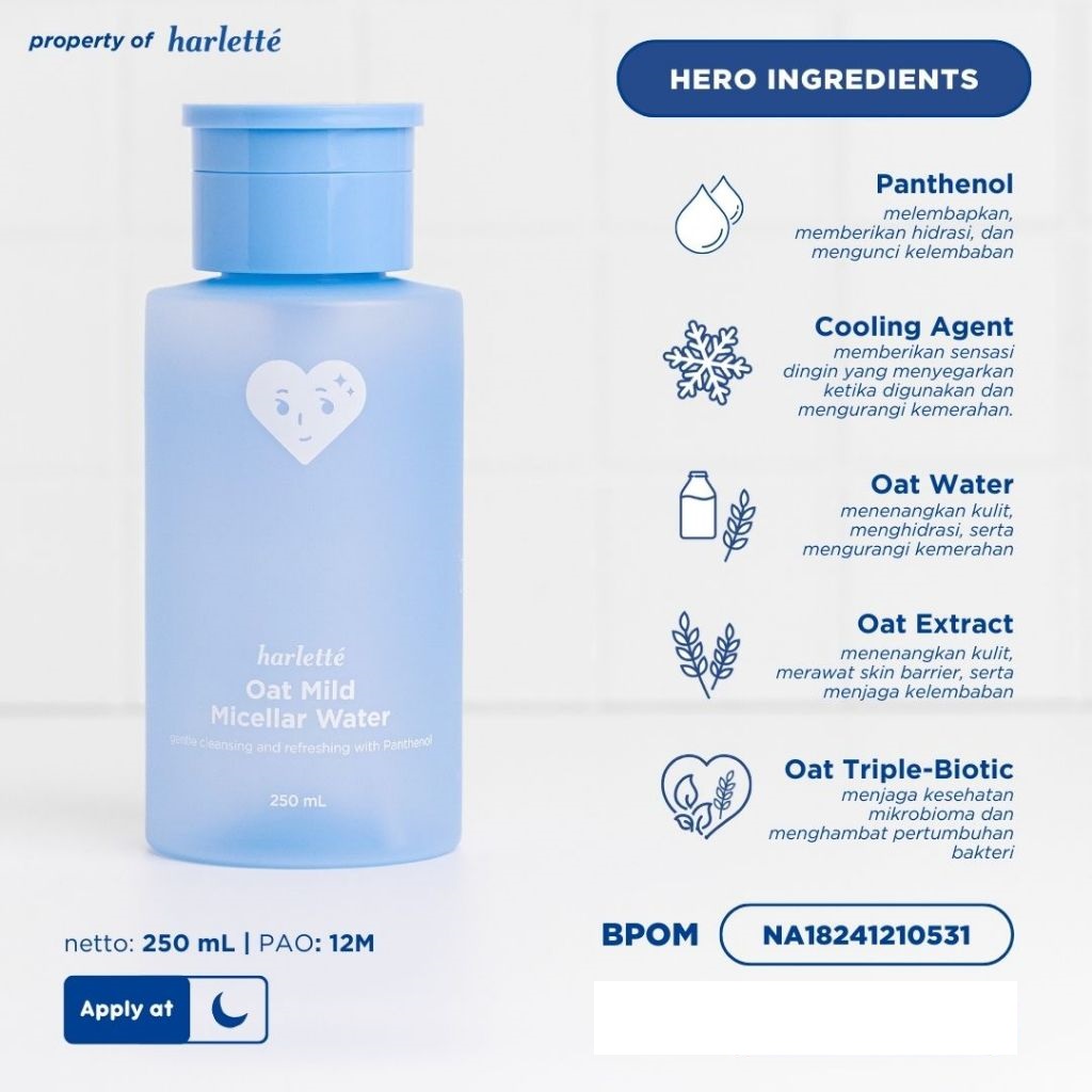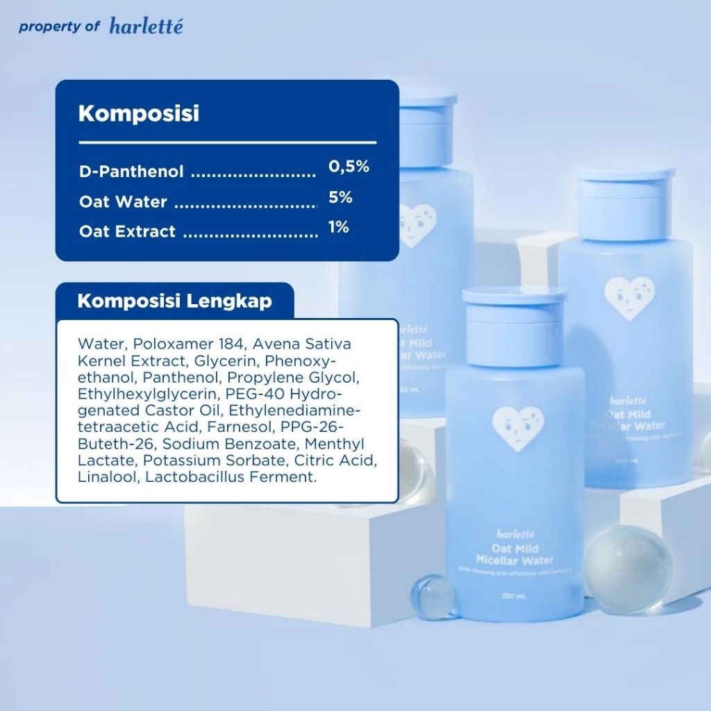 HARLETTE Oat Mild Micellar Water Sensitive Acne Prone Skin Barrier Berjerawat Membersihkan & Mencerahkan BPOM