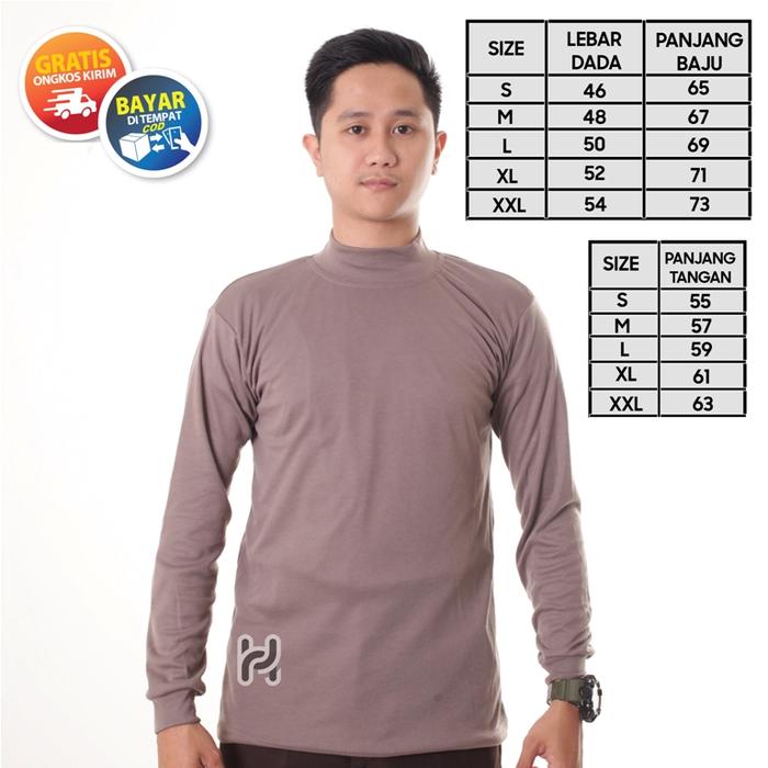 PROMO TERBATAS KAOS POLOS TANGAN PANJANG KERAH TINGGI COKELAT COKELAT POLOS MKERAH TINGGI