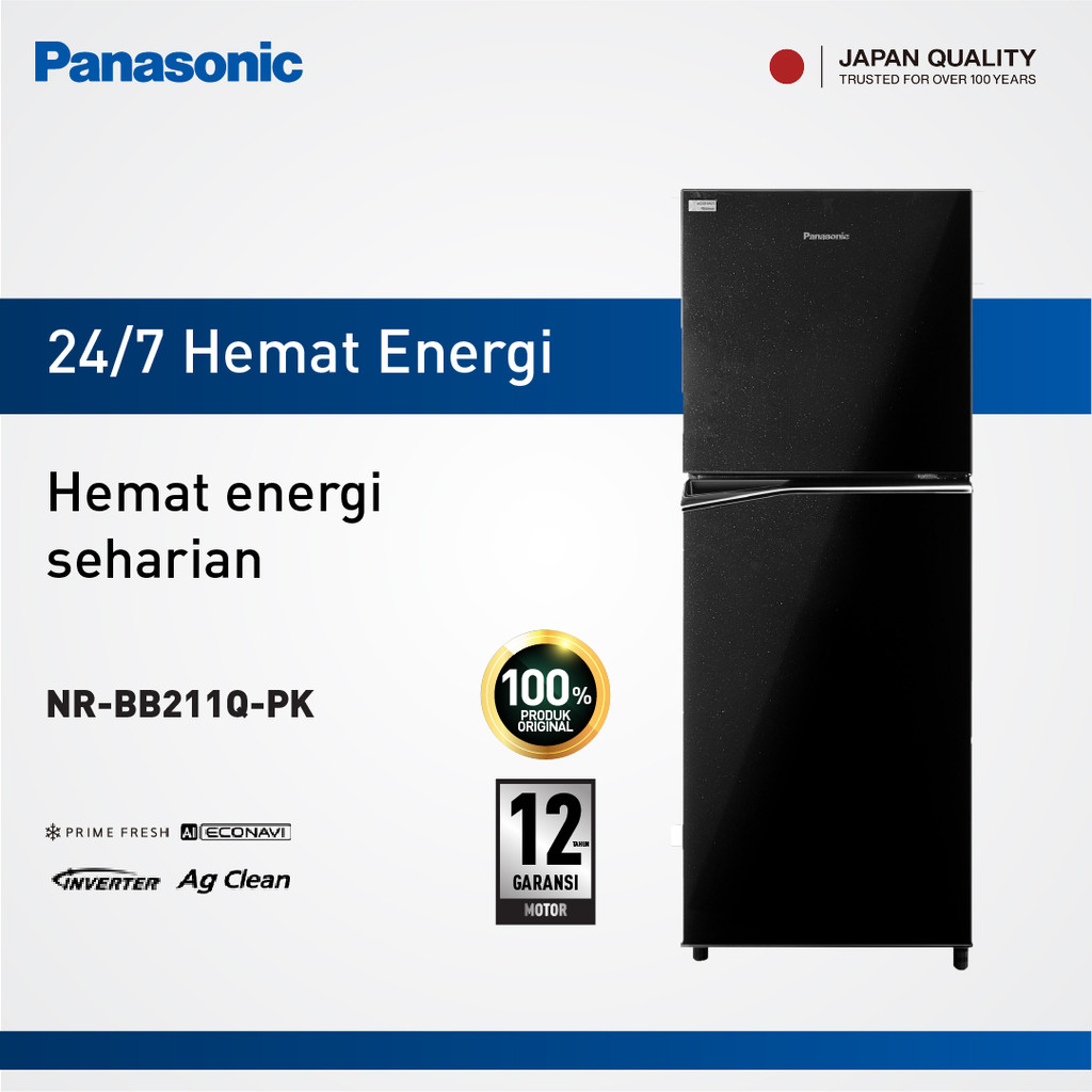 Panasonic NR-BB211Q-PK Kulkas 2 Pintu Inverter + Prime Fresh - Black
