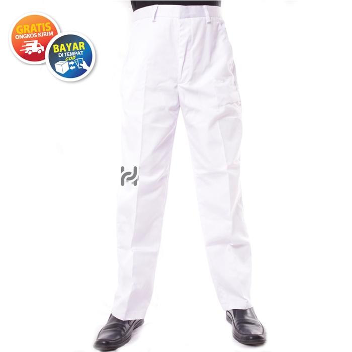 PROMO TERBATAS CELANA PUTIH PRIA PANJANG DRILL UNTUK KERJA KANTOR DOKTER PASKIBRA PERAWAT PELAJAR S