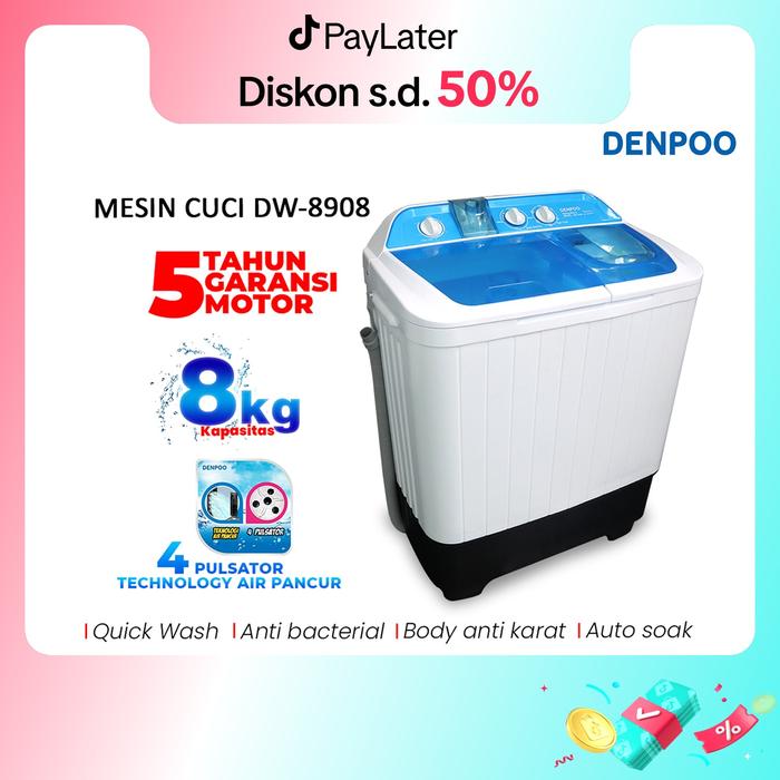 Mesin Cuci 2 Tabung Denpoo DW 8908 8KG 4P