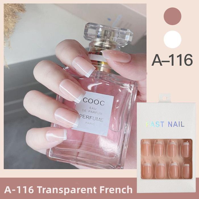 Kuku Palsu nail art aesthetic dan lem wisuda 24pcs TRANSPARENT FRENCH tangan cat Polish Kutek - A147