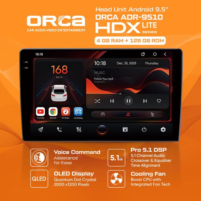 Head Unit Android ORCA HDX LITE ADR-9510 2K QLED 9.5 Inch / 10.5 Inch Ram 4GB ROM 128GB 4/128GB