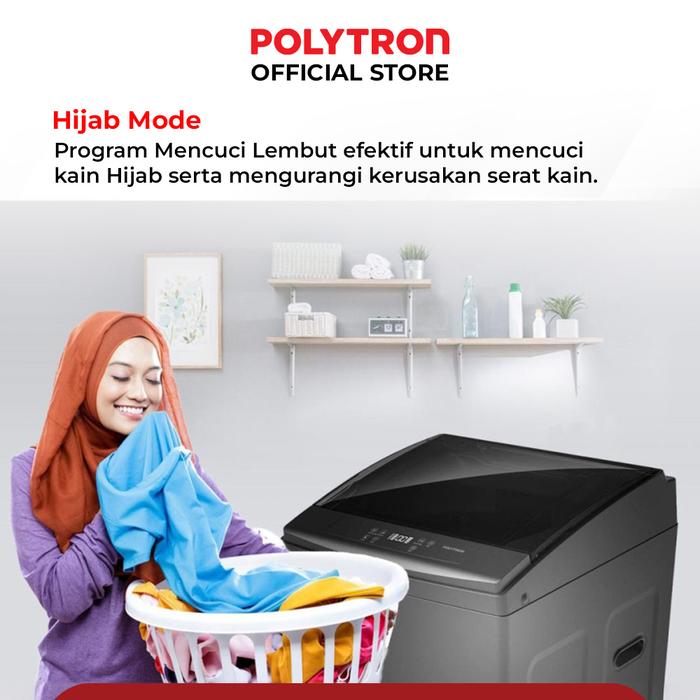 POLYTRON Mesin Cuci 1 Tabung Zeromatic Hijab 7.5 KG PAW 75518B
