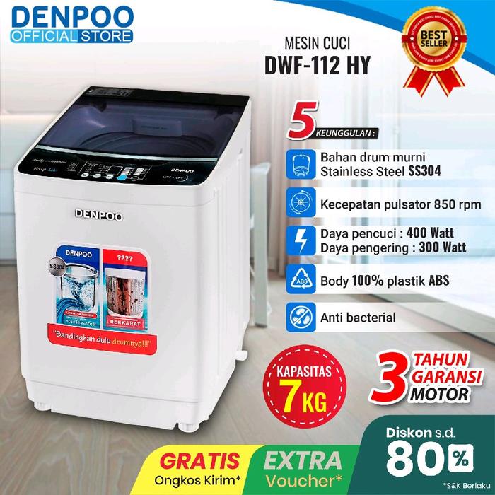 Denpoo Mesin Cuci Full Auto DWF-112 HY 7 KG Stainless Steel Inner Tub
