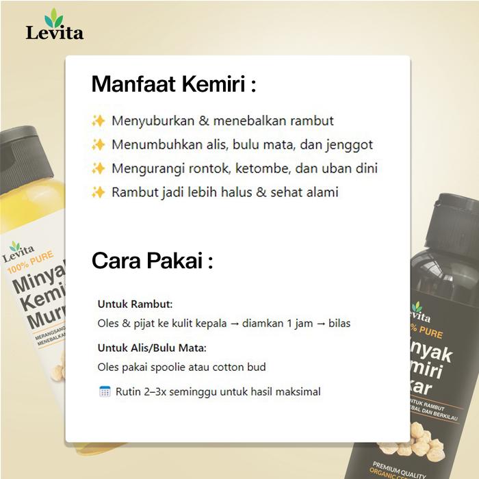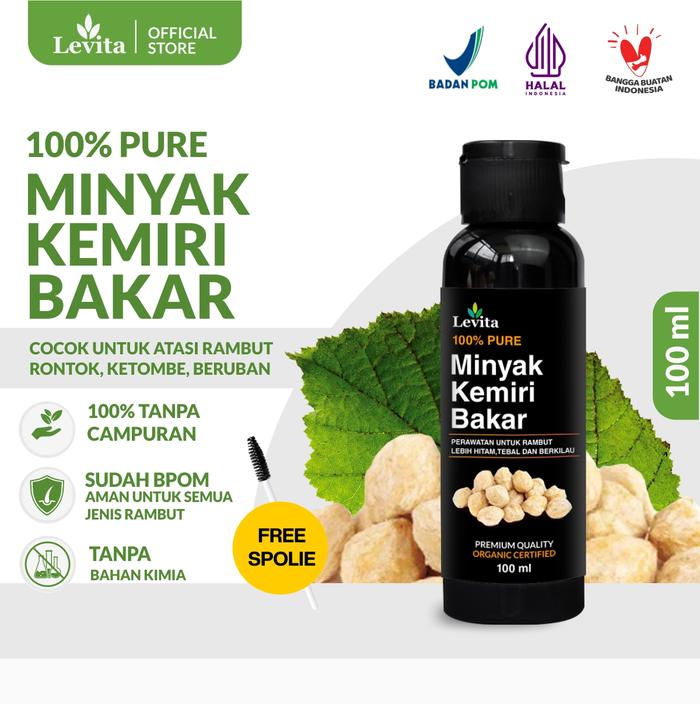 Levita Minyak Kemiri Bakar 100ml [BPOM] – Penumbuh Rambut Melebatkan Brewok & Alis Anti Ketombe - 100ML