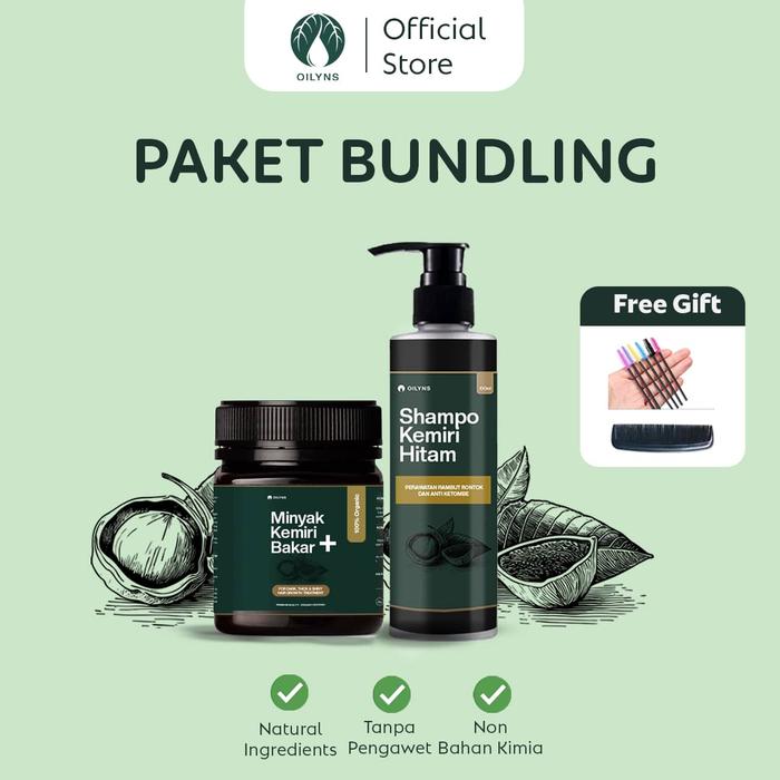 [BUNDLING] Oilyns Minyak Kemiri Bakar PLUS 100gr & Shampo Hitam 100ml – Penumbuh Rambut Melebatkan & Anti Rontok