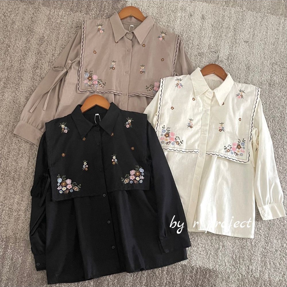 KEMEJA BORDIR BAHAN LINEN UKURAN S M L XL XXL XXXL 5L KEMEJA JUMBO ATASAN WANITA JUMBO SHIRT KEMEJA WANITA LENGAN PANJAN