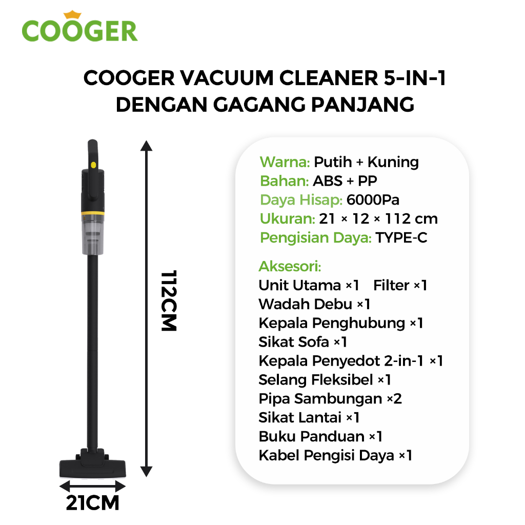 Penyedot Debu Rumah Portable COOGER Vacum Cleaner 6IN1 Penyedot Daya Hisap Real 6000Pa