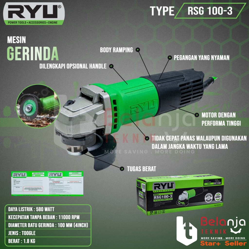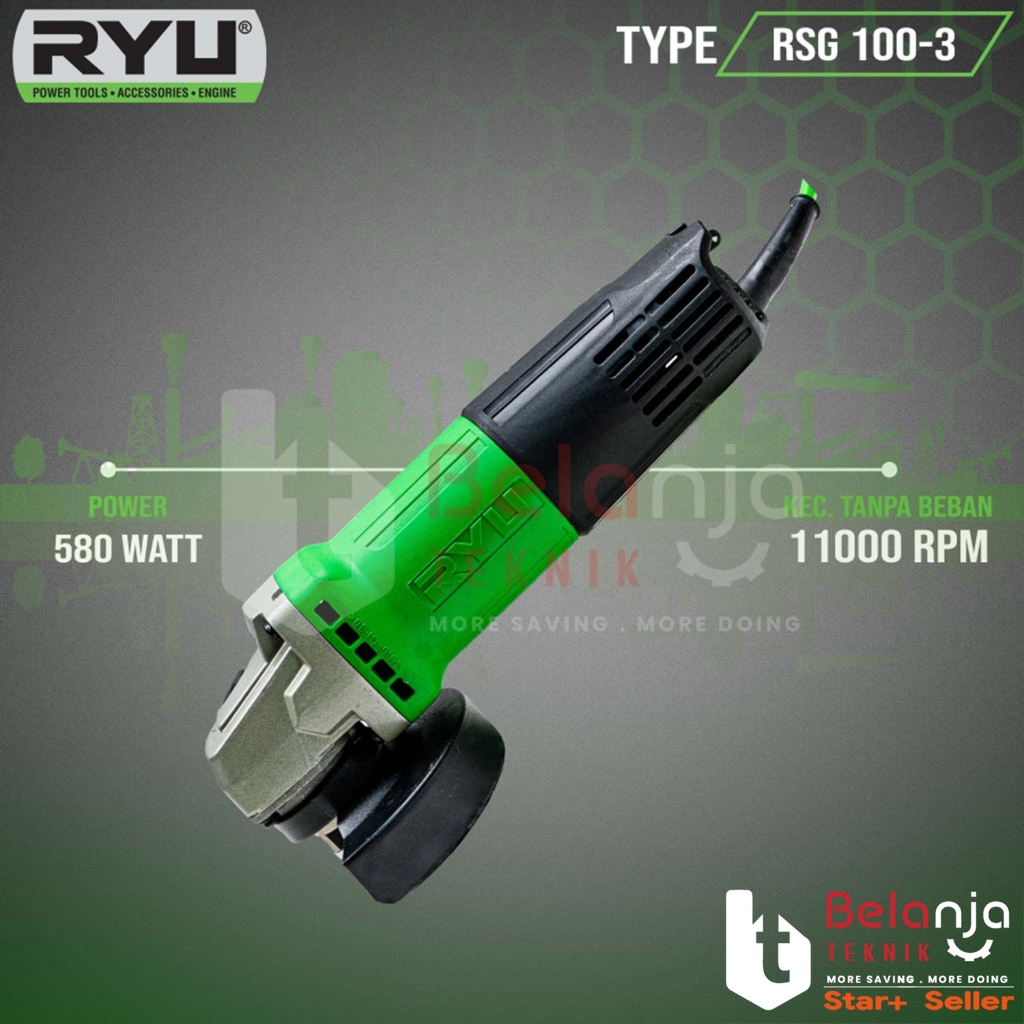 Ryu Mesin Gerinda Tangan RSG 100-3 Angle Grinder 4 Inch 580 Watt RSG100-3