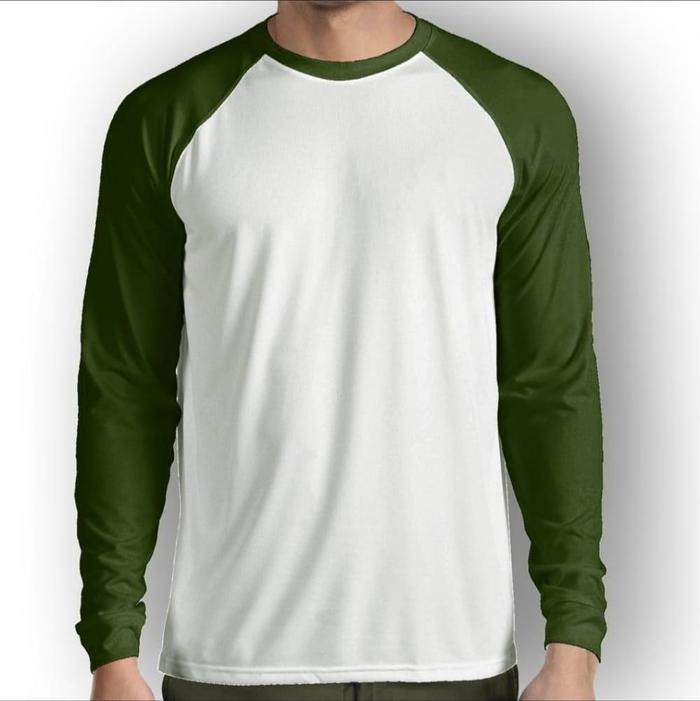 DP 0 KAOS REGLAN PUTIH KOMBINASI WARNA LENGAN PANJANG | KAOS RAGLAN UNISEX ARMY BAJU - PUTIH-TOSCA M
