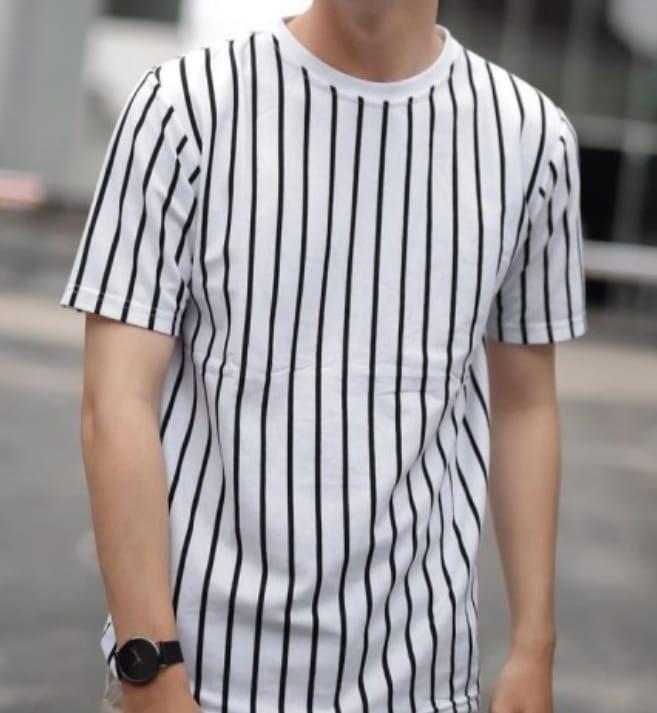 DP 0 KAOS STRIPE BELANG BELANG PRIA WANITA | ATASAN BAJU KAOS SALUR ASTOR - PUTIH M