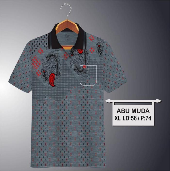 DP 0 KAOS KERAH PRIA | KAOS POLO KOREA SAKU DEWASA MOTIF BATIK CROILE 02 - ABU MUDA ALL SIZE