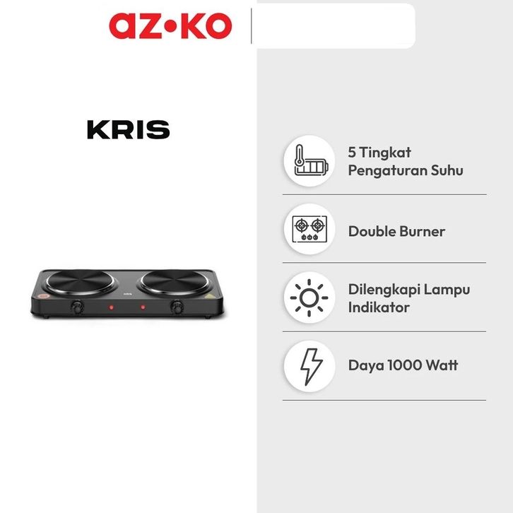 AZKO Kris Kompor Listrik Double 1000 watt Electric Stove Kompor Elektrik 2 Tungku Perlengkapan Dapur Alat Masak