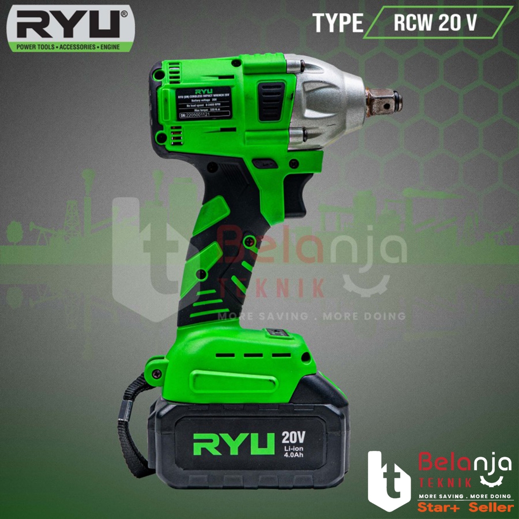 RYU Cordless Impact Wrench RCW 20 V Pembuka Baut Baterai RCW20V 320 Nm