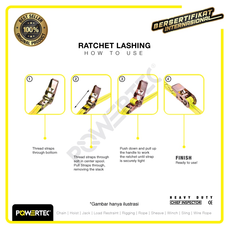 PROMO POWERTEC Ratchet Tie Down Cargo Lashing Belt 2" x 8M Pengikat Barang