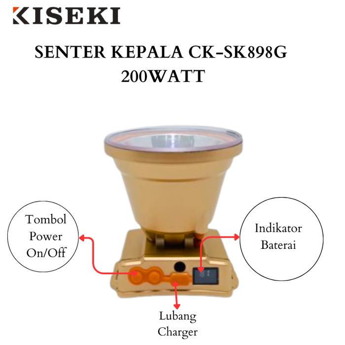 Kiseki Senter Kepala CK-SK898G Cahaya Putih 200Watt 9900mAH Kapasitas Baterai Tahan Hingga 15 Jam