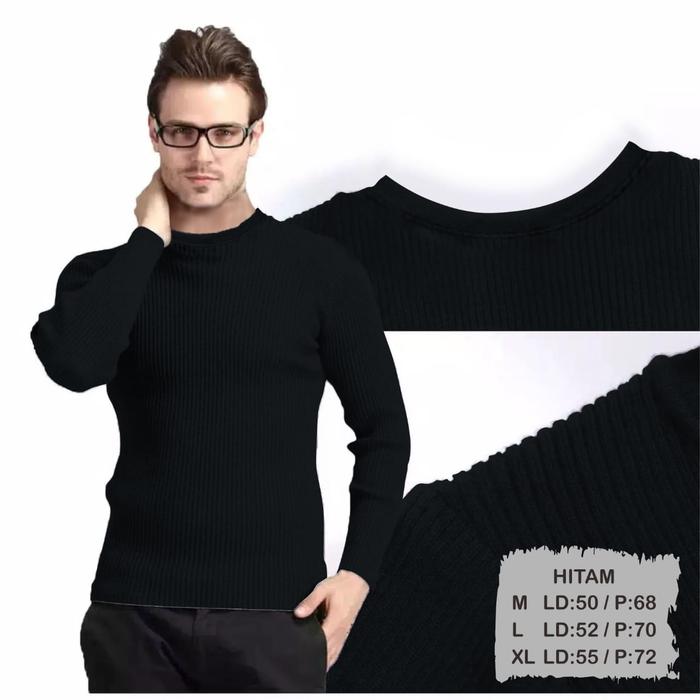 DP 0 KAOS POLOS LENGAN PANJANG ATASAN BAJU KATUN KERAH NYAMAN - HITAM M