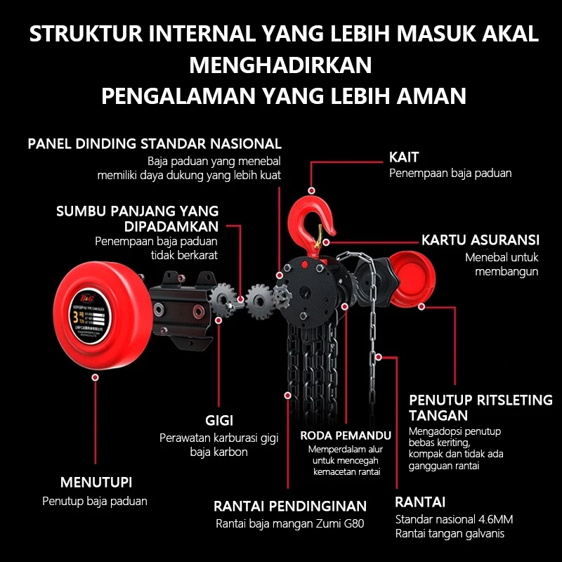 Chain Block Heavy Duty Chain Block 1ton 2ton Katrol Angkat Takel Katrol Kerekkan Manual Takel Chain