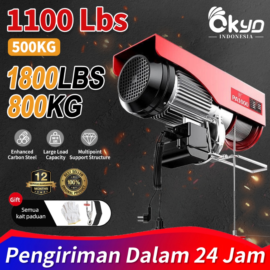 ⭐GARANSI 1 TAHUN⭐Electric Hoist Wire Rope Katrol Mini Listrik Panjang 20M Indoor dan Outdoor Kecil Derek Elektrik