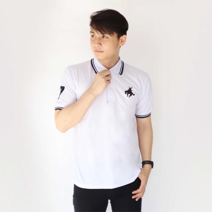 DP 0 KAOSPOLOS KAOS POLO DISTRO BERKERAH LOGO BORDIR | KAOS KERAH PRIA LENGAN PENDEK KATUN HITAM PANJANG BAJU KAOSKUDA - PUTIH M