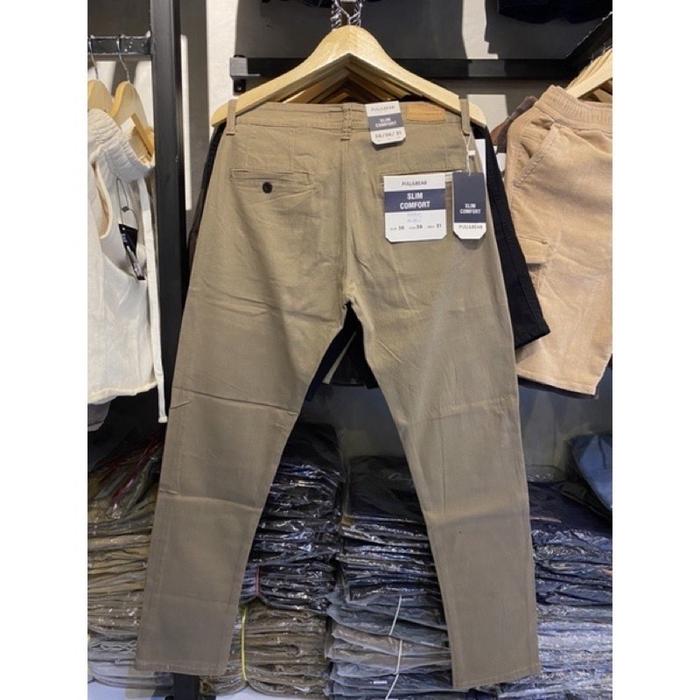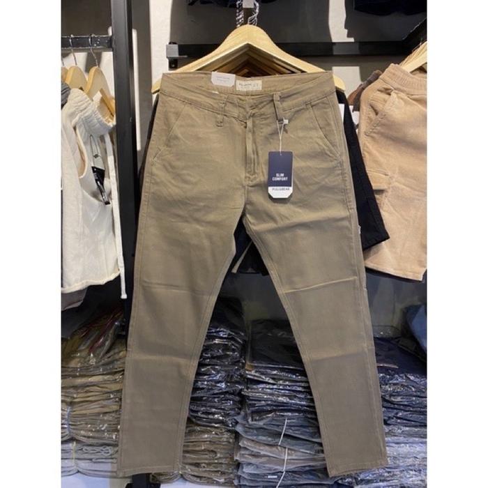 DP 0 CELANA CHINOS PANJANG PRIA SLIMFIT PULL AND BEAR ORIGINAL KHAKY 28