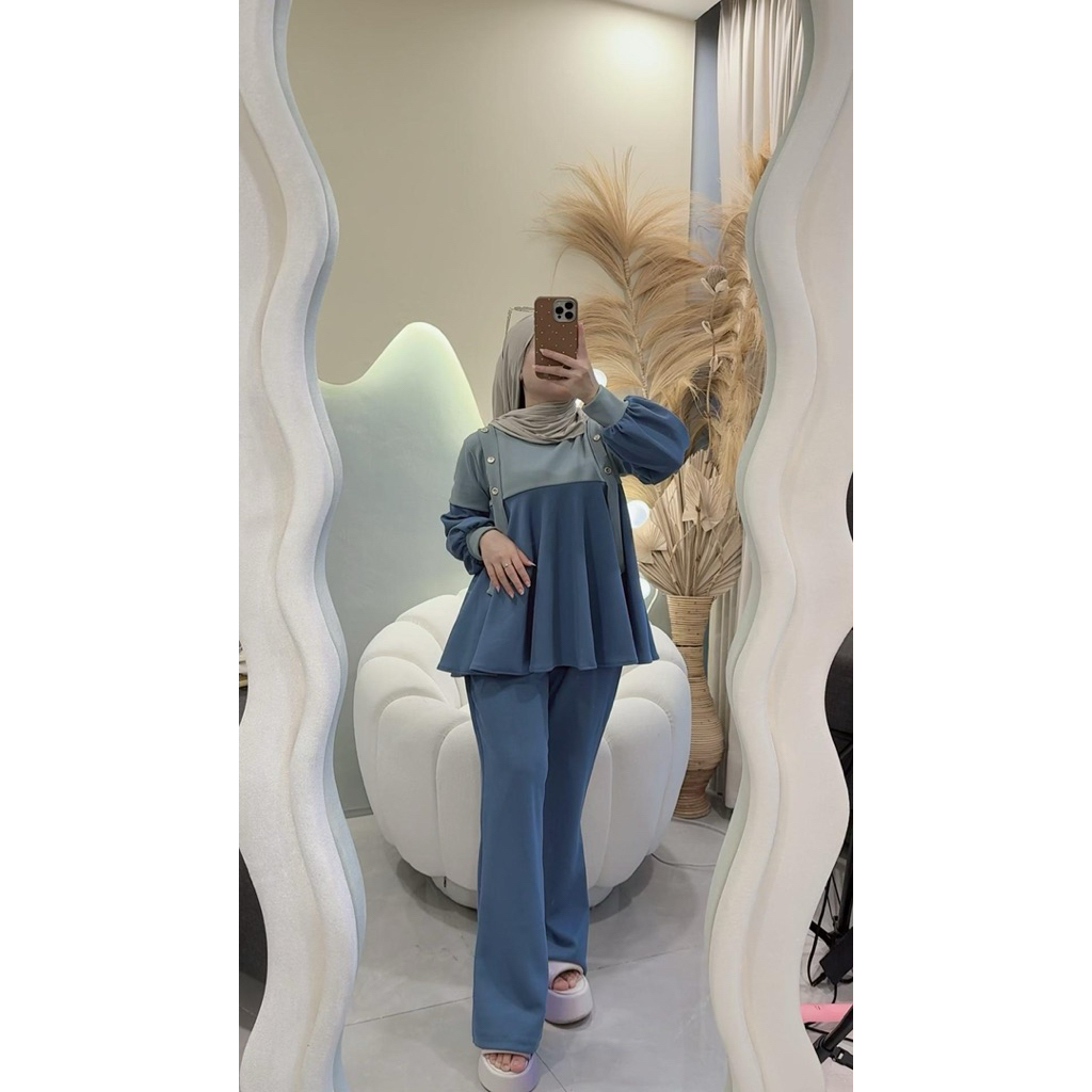 AMANDA SET SETELAN WANITA ATASAN DAN CELANA SEMI CUTBRAY KNIT PREMIUM ELEGAN MEWAH CANTIK
