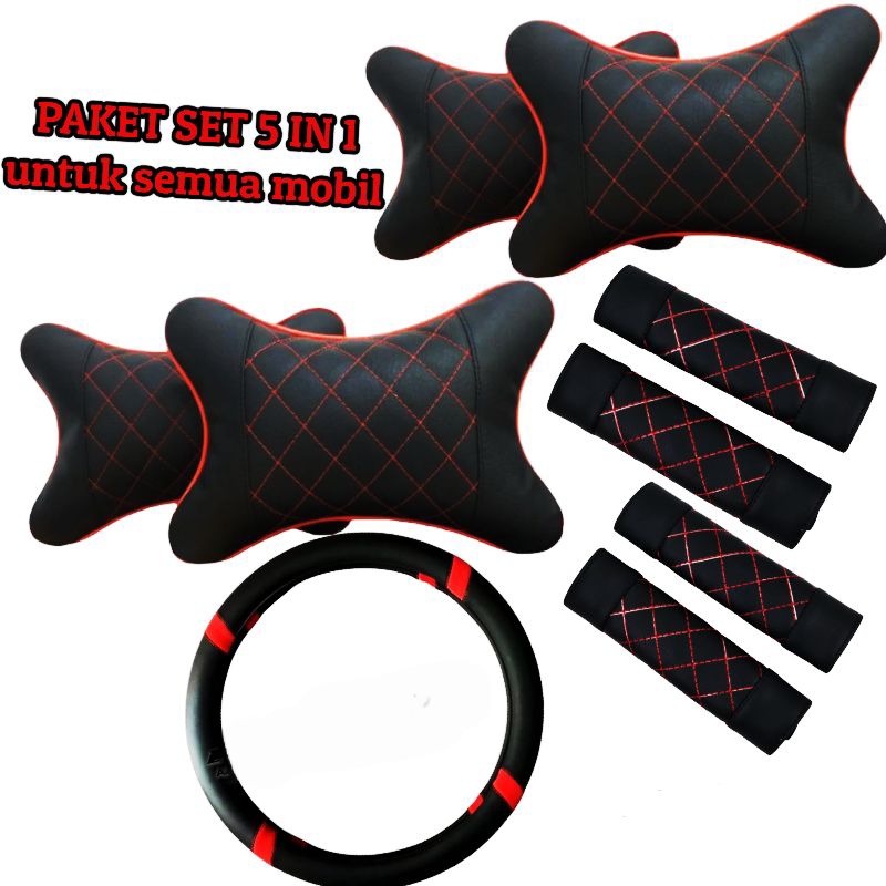 bantal mobil bantal headrest bantal sandaran kepala jok mobil paket hemat set 5 IN 1 kulit sintetis motif wajit