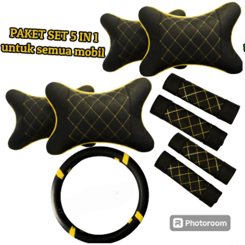 bantal mobil bantal headrest bantal sandaran kepala jok mobil paket hemat set 5 IN 1 kulit sintetis motif wajit
