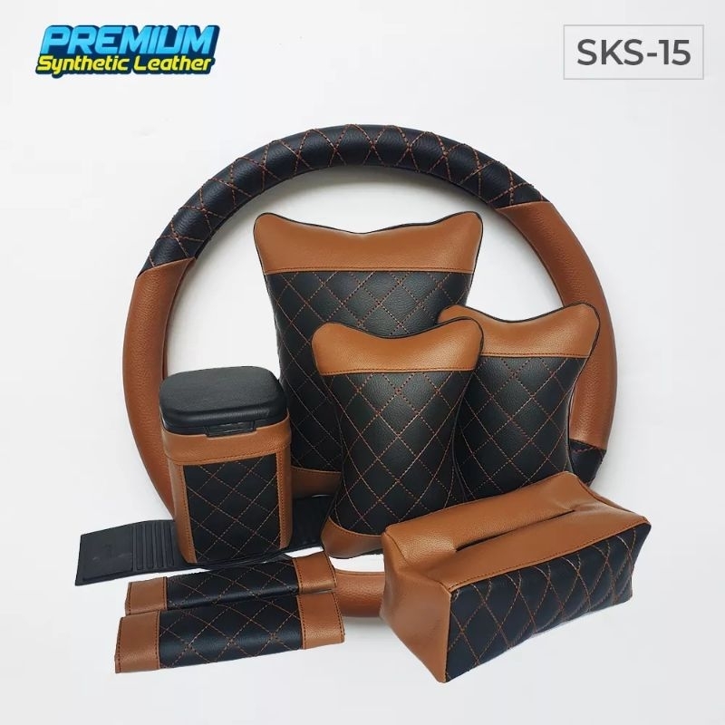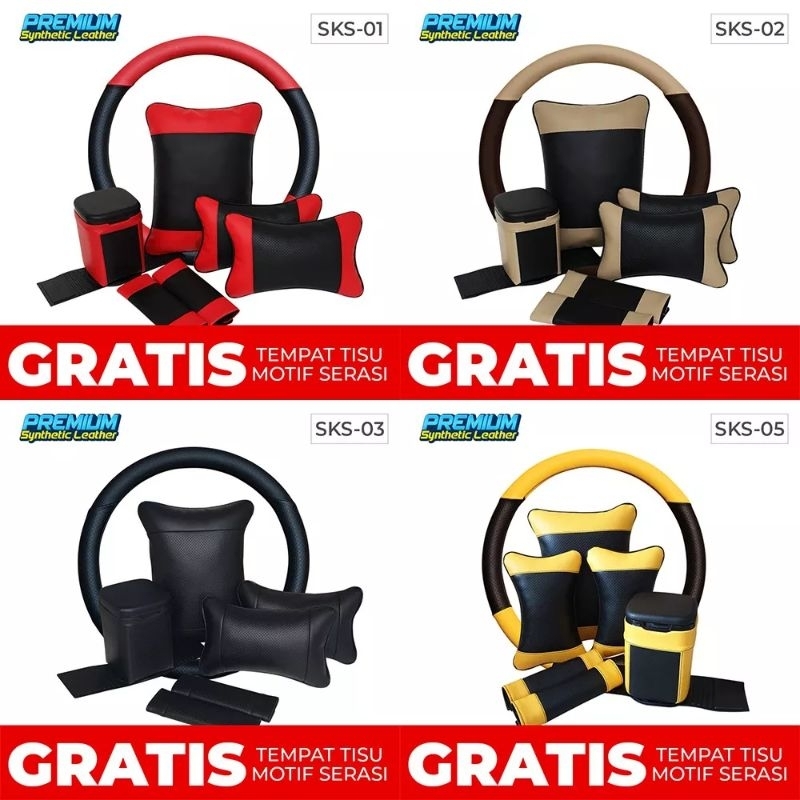 SET BANTAL MOBIL 5 IN 1 PLUS SARUNG STIR / BANTAL HEADRES MOBIL / BANTAL SANDARAN LEHER
