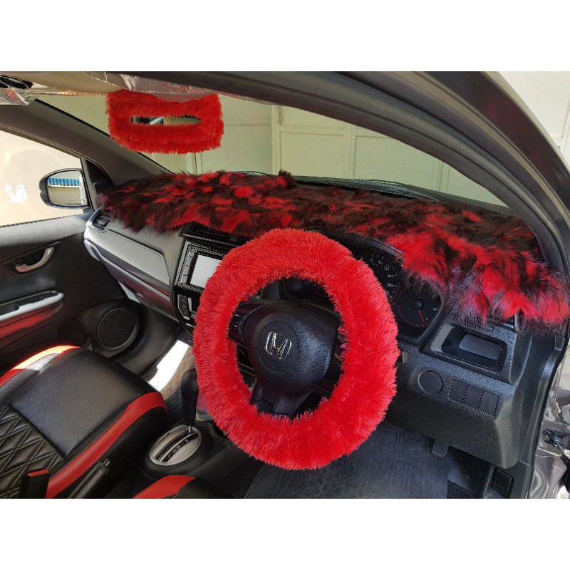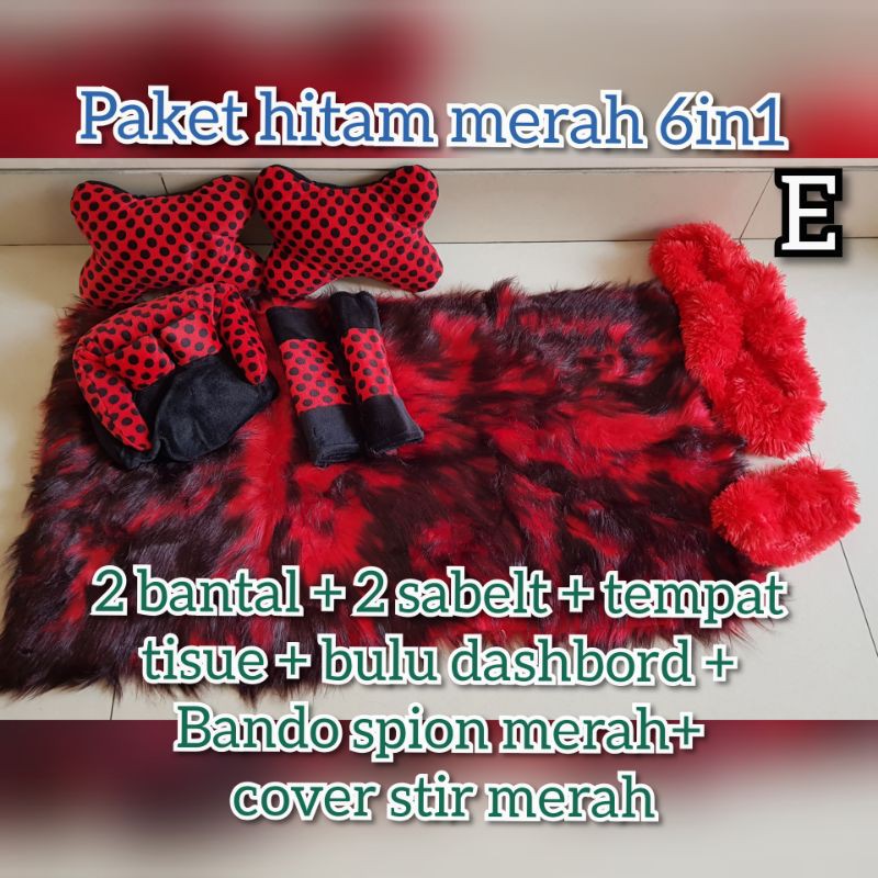 paket 6in1 (2bantal) bulu dashbord bantal leher mobil tempat tisue cover stir