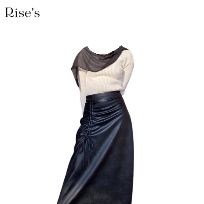 Rok Wanita/Baju Kemeja Wanita Riseleather.id Rok Kulit Wanita x ZAZKIA Elegant Aline Faux Leather